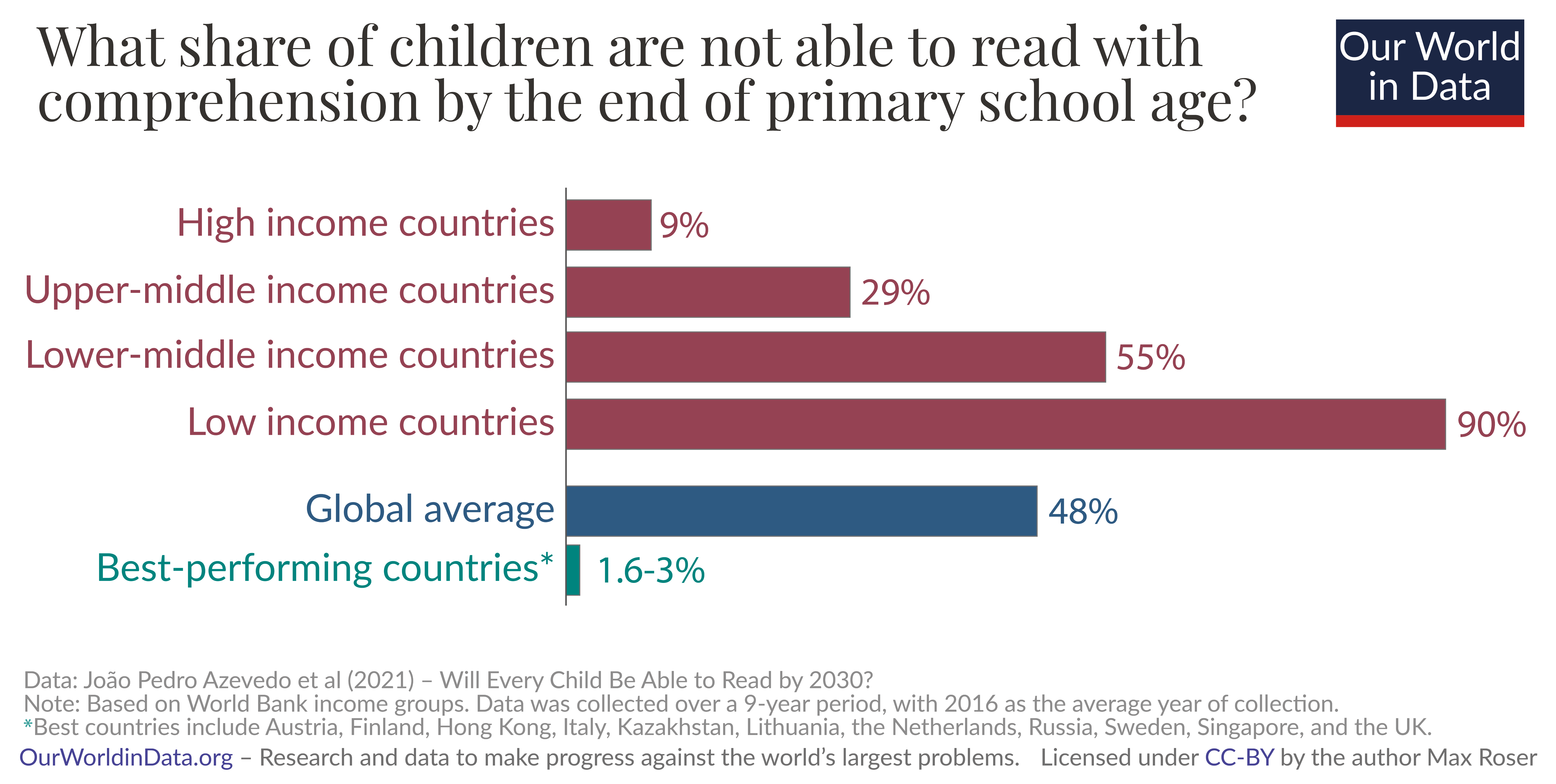 Alt i alt blir øyet ledet rundt i figuren slik at den samlet sett forteller en interessant historie om globale utdanningsforskjeller.